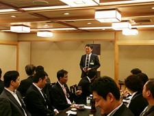第3回天青会勉強会は、パネルディスカッション「バトンタッチへの悩み」を行いました。これから事業を継承する天青会若手メンバーが日ごろ抱える悩みについて、先輩天青会メンバーより助言・提言が行われました。司会は天青会小泉会長(写真下)